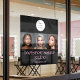 Wow your customers with this photo window cling featuring an elegant typography design in bold black and blush pink together with your logo, plus 3 photos of your choosing and your information.