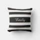 Bold Black And White Stripes Pattern Your Name Outdoor Pillow
