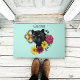 A majestic black panther surrounded by a vibrant arrangement of flowers and decorative elements. The panther’s sleek black fur and piercing green eyes create a powerful focal point, while colorful blooms—yellow daisies, deep red flowers, and a lush pink dahlia—add warmth and contrast. A bold mandala-style floral motif sits behind the panther, enhancing the design with an artistic, bohemian flair. Set against a soft mint-green background, this illustration blends strength and beauty, making it perfect for animal lovers, nature enthusiasts, and fans of bold, artistic designs.