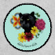 A majestic black panther surrounded by a vibrant arrangement of flowers and decorative elements. The panther’s sleek black fur and piercing green eyes create a powerful focal point, while colorful blooms—yellow daisies, deep red flowers, and a lush pink dahlia—add warmth and contrast. A bold mandala-style floral motif sits behind the panther, enhancing the design with an artistic, bohemian flair. Set against a soft mint-green background, this illustration blends strength and beauty, making it perfect for animal lovers, nature enthusiasts, and fans of bold, artistic designs.