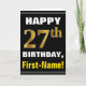 Bold, Black, Faux Gold 27th Birthday w/ Name Card