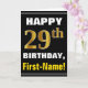 Bold, Black, Faux Gold 29th Birthday w/ Name Card