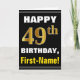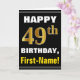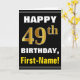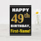 Bold, Black, Faux Gold 49th Birthday w/ Name Card