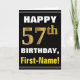 This simple birthday-themed greeting card design features a warm birthday wish like "HAPPY 57th BIRTHDAY, First-Name!" on the front, in bold text on a black colored background. The birthday number has a faux/imitation gold-like coloring look. The name on the front can be customized. The inside features a birthday message that can be personalized. A greeting card like this could be a fun way to deliver birthday wishes to somebody who is celebrating their fifty seventh birthday. [~Z0000275]