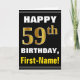 Bold, Black, Faux Gold 59th Birthday w/ Name Card