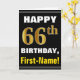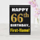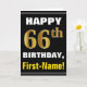 Bold, Black, Faux Gold 66th Birthday w/ Name Card