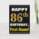 Bold, Black, Faux Gold 86th Birthday w/ Name Card