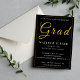Some graduations deserve more than a plain white card — this is for those celebrations. Deep matte black meets oversized antique gold script in a layout that feels cinematic from the first glance, while the clean gold border ties every detail together with quiet confidence. Send this and every guest will know before they even arrive that this party means business.