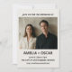 This modern photo wedding invitation features a soft ivory background with bold black typography and your engagement photo in the center. Includes couple's names, wedding date, venue, city, and RSVP website. Customizable with your photo, names, date, time, location, and website. For couples who want a clean, minimalist, bold wedding invitation with their engagement photo.