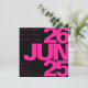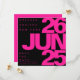 This bold save the date card features a hot pink and black color scheme. Large sans serif lettering displays the date of the wedding. A smaller font displays the couple's first names, location, and that an invitation will follow. Browse my collection for the matching suite. ••• For more stylish wedding suites, visit my store Zazzle.com/EventsByJessicaAmber ••• For custom orders, message me on Zazzle
