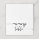 Memory table tented card for a funeral or memorial service in a black and white design with a bold script. White memory table card with a black script.