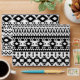 This monochrome, Aztec-inspired pattern is a detailed geometric design made of triangles and zigzags. The black and white colors create a strong, contrasting, minimalist look. This tribal style is very boho and modern, adding a sophisticated Southwestern vibe to any product.