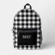 Bold Black White Buffalo Check with Monogram Printed Backpack
