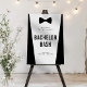 Welcome guests in style with this bold black-and-white Bachelor Bash sign, designed with a tuxedo-inspired layout and classic bow tie graphic. Featuring clean modern typography, it sets the tone for the groom’s last big night before the wedding. Personalize with the groom’s name, date, and party details for a stylish, customized decoration. Perfect for party entrances, bars, or photo backdrops, this sign is a fun way to kick off the celebration.