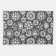 This bold, eye-catching pattern features a ayer of stylized daisy flowers and sunbursts in different shapes. The white design sits on a black background, creating a powerful graphic look. This is a vintage, retro 70's style, perfect for a modern, chic statement.