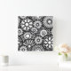 Bold Black White Retro 70s Graphic Daisy Pattern Square Wall Clock