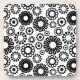 This bold, eye-catching pattern features a fun mix of repeating stylized flowers and geometric dot circles. The black design sits on a clean white background, creating a monochrome graphic look. This pattern has a strong Retro 60s feel, making it a modern, chic statement piece.