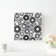 Bold Black White Retro Simple Flower Dot Pattern Square Wall Clock