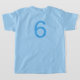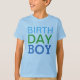 Get the party started with this light blue tee featuring stacked "Birthday Boy" typography in bold blue and green. The back displays a large customizable age number in blue for a sporty, jersey-inspired detail that is perfect for birthday photos. A fresh and fun alternative to the classic navy, ideal for spring and summer birthday celebrations.
