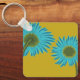 Bold Blue Daisy Art on Mustard Yellow Background Keychain