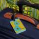 Bold Blue Daisy Art on Mustard Yellow Background Luggage Tag