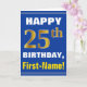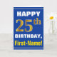Bold, Blue, Faux Gold 25th Birthday w/ Name Card