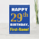 Bold, Blue, Faux Gold 29th Birthday w/ Name Card