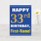 Bold, Blue, Faux Gold 33rd Birthday w/ Name Card