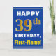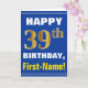 Bold, Blue, Faux Gold 39th Birthday w/ Name Card