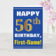 Bold, Blue, Faux Gold 56th Birthday w/ Name Card