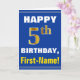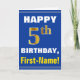 Bold, Blue, Faux Gold 5th Birthday w/ Name Card