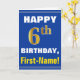 Bold, Blue, Faux Gold 6th Birthday w/ Name Card