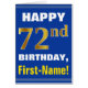Bold, Blue, Faux Gold 72nd Birthday w/ Name Card