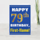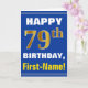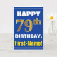 Bold, Blue, Faux Gold 79th Birthday w/ Name Card