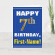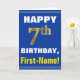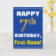 Bold, Blue, Faux Gold 7th Birthday w/ Name Card