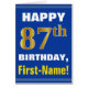 Bold, Blue, Faux Gold 87th Birthday w/ Name Card