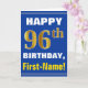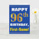 Bold, Blue, Faux Gold 96th Birthday w/ Name Card