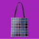 Carry your essentials in bold style with this eye-catching tote bag featuring a vibrant plaid pattern in deep blue, lavender pink, black, and white. The modern tartan grid design adds a fresh and stylish twist to a classic look—perfect for errands, books, or everyday adventures. Durable and roomy with sturdy handles, this tote brings fashion and function together beautifully.