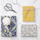 Bold Blue Yellow Abstract Classy Ikat Pattern Wrapping Paper Sheets