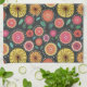 Bold boho Scandi folk flower pattern Kitchen Towel