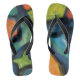 A bold, contemporary abstract painting in bold and bright color blocks decorate these slippers, or flip flops as they say on the mainland. Spunky, fun and stylish, for men or women. Original painting, Untitled No. 68, by Leslie Newman.