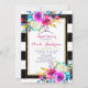 Bold Bright Colorful Floral Black & White Stripes Invitation