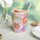 Sip in style with bold, colorful paper cups adorned with watercolor florals that brighten any spring, summer, or whimsical fall celebration. The design features an uplifting mix of blush pink, fuchsia, orange, golden yellow peonies, lavender roses, blue delphinium, cheerful daisies, wildflowers, and a sweet butterfly to tie it all together. These cups bring personality to every pour, whether for a wedding, shower, or party. Serve up your favorite drinks with a side of floral flair—design your perfect set today!