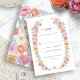 Bold Bright Floral RSVP Card. Bring elegance and energy to your wedding RSVP card with this vertical design, ideal for a spring, summer, or whimsical fall celebration. The front features a graceful wreath of hand-painted florals—including blush pink, fuchsia, orange, and golden yellow peonies, lavender roses, blue delphinium, daisies, and wildflowers—accented by a delicate butterfly for a whimsical touch. The matching floral pattern on the back completes the look with style and charm. Make responding to your wedding as joyful as the celebration itself—design your perfect RSVP card today.