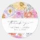 Seal your gratitude with vibrant thank you stickers that double as beautiful keepsakes. Featuring watercolor florals in blush pink, bright fuchsia, orange, and golden yellow peonies, lavender roses, blue delphinium, cheerful daisies, wildflowers, and a soft butterfly, these stickers are perfect for spring, summer, or whimsical fall celebrations. They add a heartfelt and colorful touch, whether on favor bags, boxes, or gifts. Send guests home with a smile—add a final flourish to your favors with this cheerful design.