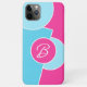 Beautiful contemporary bright hot pink, light pastel, aqua turquoise blue, and white colored circles pattern. With room to customize or personalize with a name monogram or initial of your choice. Funky, elegant, stylish, and eclectic design for the fancy artistic fashionista, the artsy fashion diva, popular hip trendsetter, vintage retro art style, and abstract digital geometric motif lover who wants to protect their phone from dust and dirt, wear and tear. This design is available for iPhone 6, 7, and 8 Plus, 10 or X, XR, XS, 11, 12, 13 Mini, 14, and 15 Pro Max cellphone cases. Show off your style, look fashionable, and feel stylish with a unique design on a mobile device accessory of your choice.
