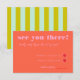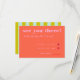 This vibrant and playful RSVP wedding enclosure card features a burst of color! Fun bright pink fonts on a cheerful red background make this a joy to add to your invitation suite. Turn it over to another fun surprise - green and blue stripes on the backside. Pair with the Blooming Joy wedding invitation collection.