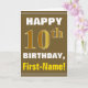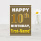 Bold, Brown, Faux Gold 10th Birthday w/ Name Card