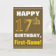 Bold, Brown, Faux Gold 17th Birthday w/ Name Card