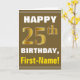 Bold, Brown, Faux Gold 25th Birthday w/ Name Card